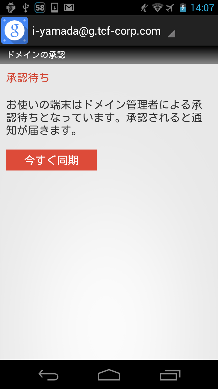 Google Apps の管理者がAndroid端末のアクセスを承認するのを待ちます。