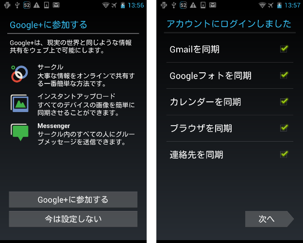 Google+の使用や同期をおこなう項目は御社のポリシーに従ってください。